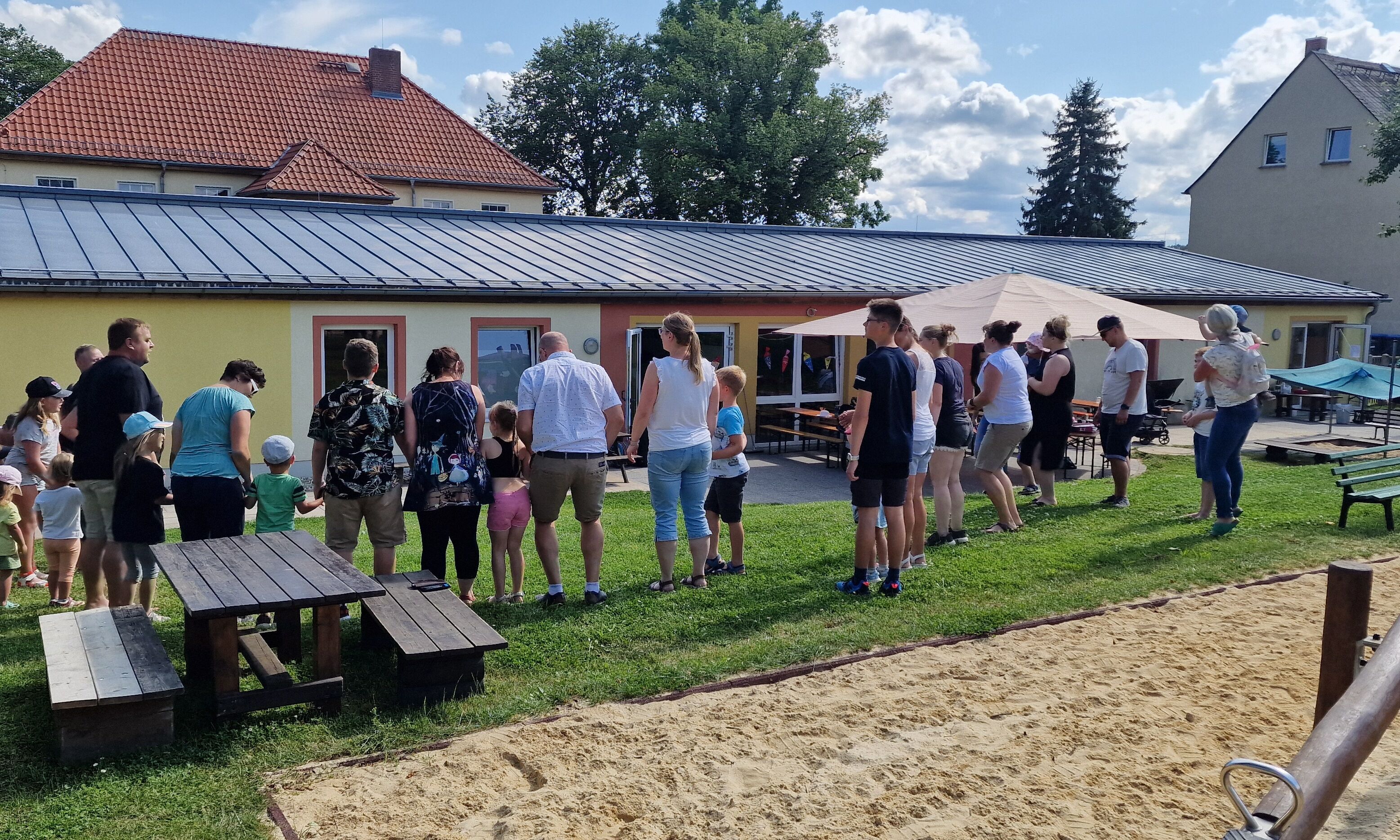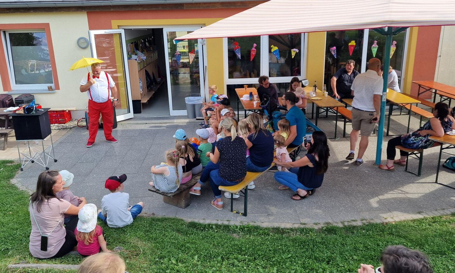 Fröhlich wurde am 16. Juli in unserem Garten das Sommerfest mit Kindern, Eltern und Erzieherinnen gefeiert. Hierbei verabschiedeten wir unsere beiden Schulanfängerinnen mit einem lustigen "Rausschmiss" aus der Kita.