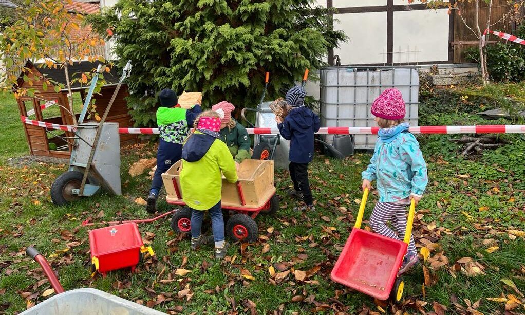 Der Herbst geht so langsam vorüber und die besinnliche Weihnachtszeit grüßt uns. Es ist Zeit für einen Rückblick ins herbstliche „Spatzennest“. Neben Drachen steigen, Kastanien suchen und in den Jackentaschen Hamstern, waren unsere Papas mit vollem Körpereinsatz ganz fleißig. So entstanden, wie traditionell in jedem Jahr, wieder tolle