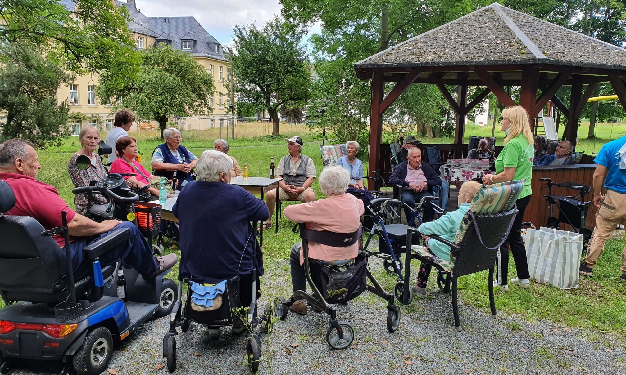 In unserer Wohnanlage laden die verschiedenen Gemeinschaftsflächen zur Begegnung und Kommunikation ein. Sei es im Foyer bzw. Laubengang, in der Begegnungsstätte als der Treffpunkt für Geselligkeit, im Sportraum zur körperlichen Ertüchtigung oder in der wunderbar gestalteten großen Parkanlage, die zu Spaziergängen, aber auch zur Ruhe und Entspannung einlädt. Es finden schöne unterhaltsame jahreszeitliche Veranstaltungen statt, die zum Feiern einladen. Gern besuchen uns auch die Kinder aus unserer Kindertagesstätte „Pusteblume“, um gemeinsam mit den Bewohnern zu basteln, zu musizieren oder Lieder und Gedichte vorzutragen. Im großzügigen Park befindet sich auch ein kleiner Spielplatz für die Kinder.